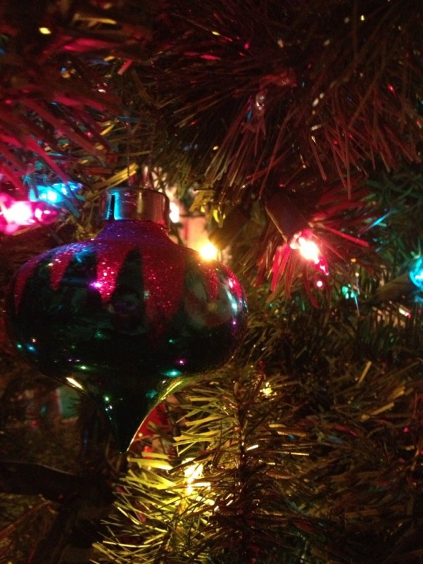 More than any ornament, what seems to fascinate my daughter most are the little twinkly lights on the tree. We have spent quite a bit of time laying under the tree and staring up into the “preddy wites.” She can proudly name all the colors of the lights on our tree and can lay there for a half hour or more — an eternity in toddler time — pointing at different ones and exclaiming, “Green! Purple! Yellow! Red! Orange!”