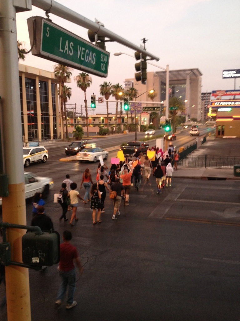 Entering Fremont Street to see a crowd of not only minorities like myself (De’Liza) but to see white men and women standing together has made me realize that in The United States of America, we truly can be united.