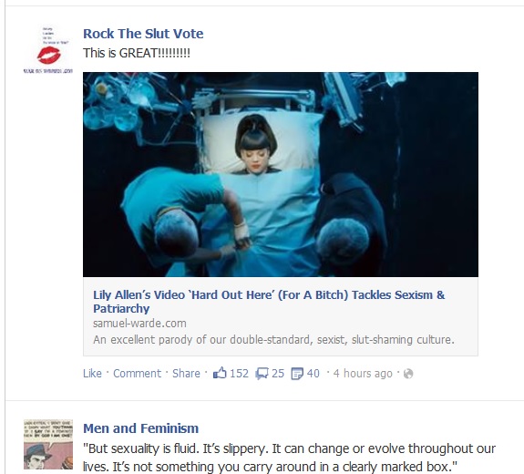 Perhaps the schism between the feminist folks who are loving it (see: Rock the Slut Vote, above) and those who are calling it out is just another one of those teachable moments. What I worry about is that things like this tend to divide us (like toddlers screaming incoherently), rather than bring together folks in thoughtful, yet passionate, discussion. Even Allen’s ineffectual apology is only serving to pile on the pain. Stop! You’re making it worse!